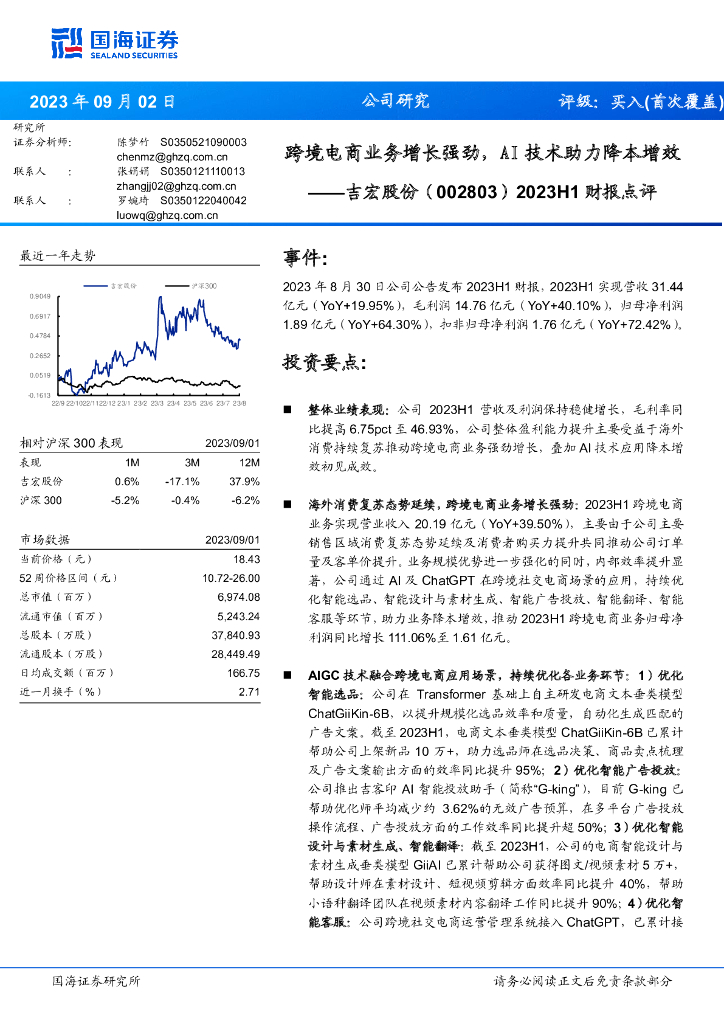 国海证券:吉宏股份(002803)-2023H1财报点评:跨境电商业务增长强劲,AI技术助力降本增效.pdf