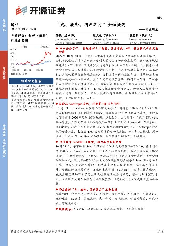开源证券:通信行业周报:“光、液冷、国产算力”全面提速.pdf