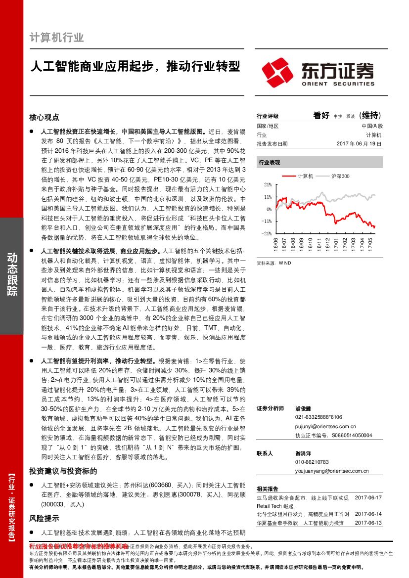 东方证券:计算机行业动态跟踪:人工智能商业应用起步,推动行业转型.pdf
