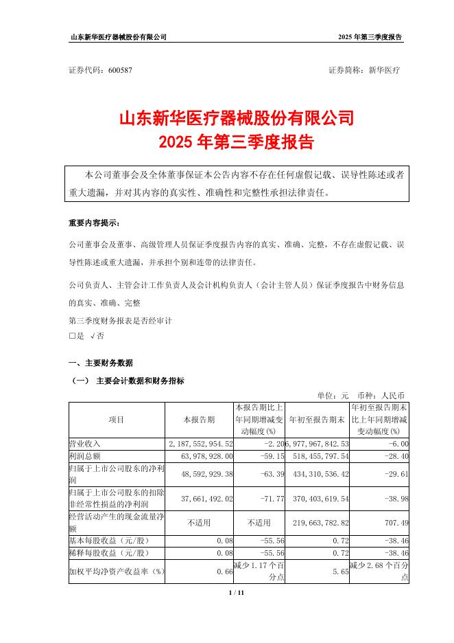600587-新华医疗:新华医疗2025年第三季度报告.pdf