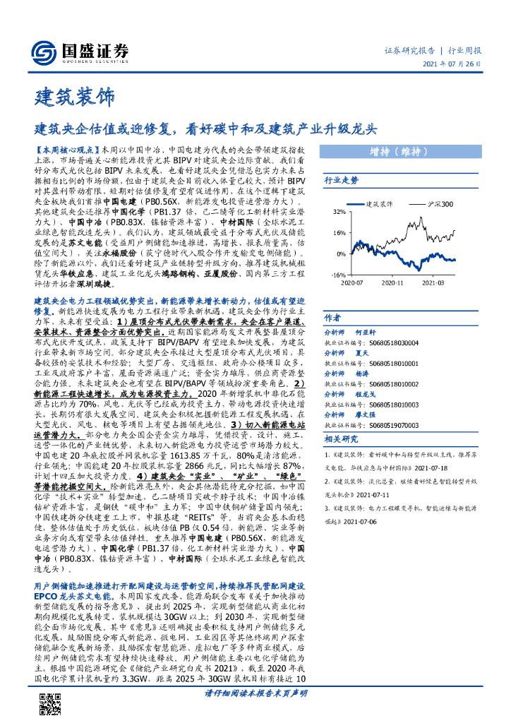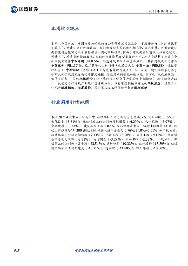 国盛证券:建筑装饰行业周报:建筑央企估值或迎修复,看好碳中和及建筑产业升级龙头.pdf