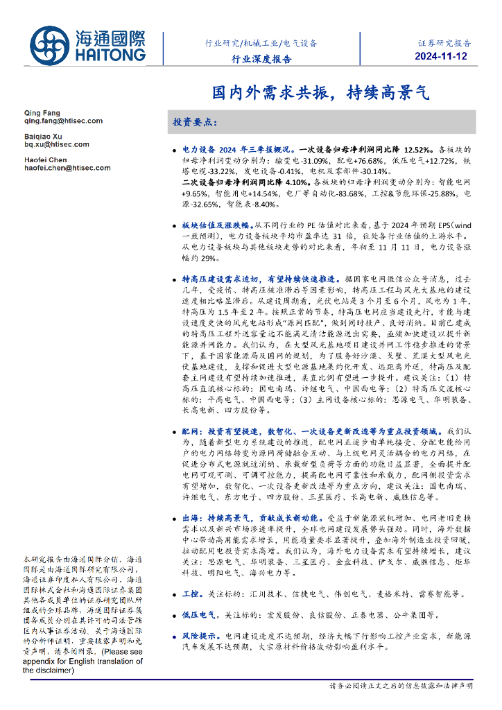 海通国际:电气设备行业深度报告:国内外需求共振,持续高景气.pdf