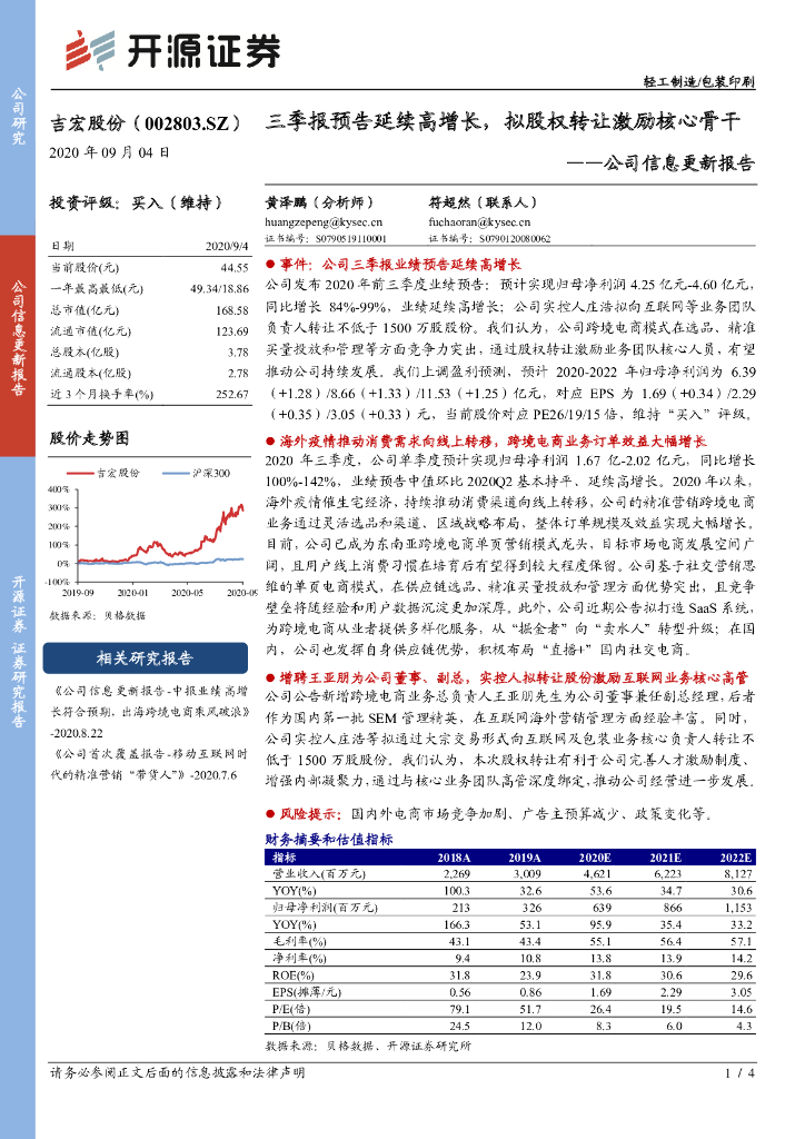 开源证券:吉宏股份(002803)-公司信息更新报告:三季报预告延续高增长,拟股权转让激励核心骨干.pdf