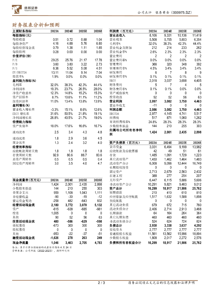 德邦证券:银泰黄金:产量符合规划,黄金成本下降.pdf