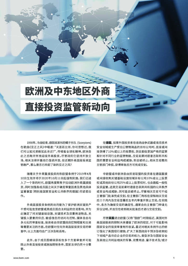 金杜律师事务所:进军欧洲及中东:外商直接投资监管注意事项.pdf