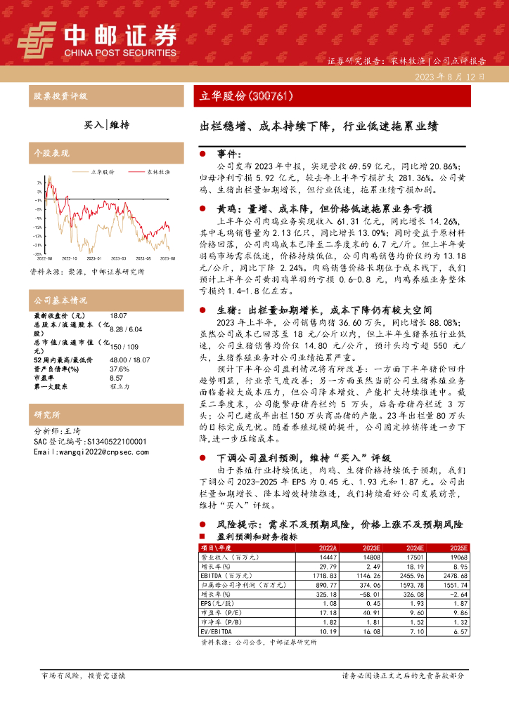 中邮证券:立华股份(300761)-出栏稳增、成本持续下降,行业低迷拖累业绩.pdf