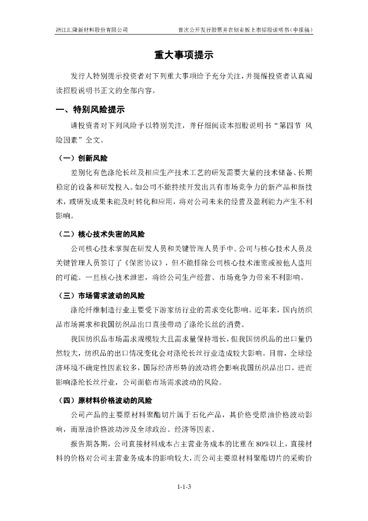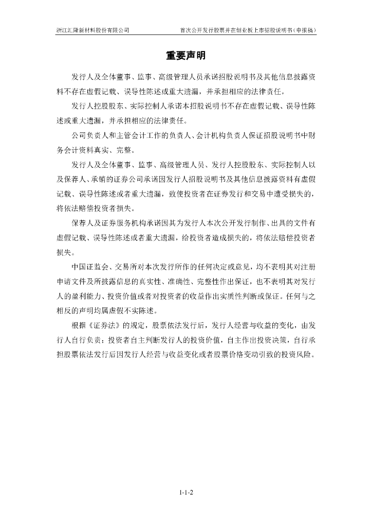 浙江汇隆新材料股份有限公司深交所创业板IPO上市招股说明书.pdf