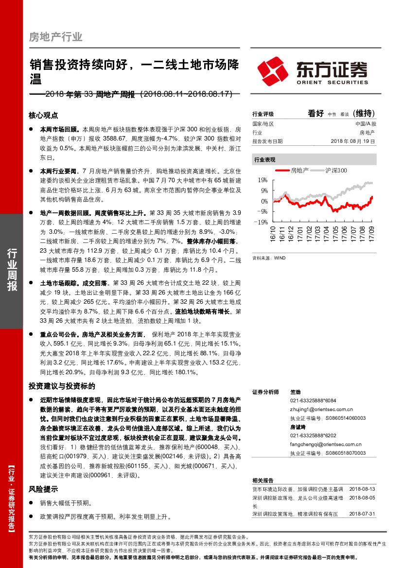 东方证券:房地产周报:销售投资持续向好,一二线土地市场降温.pdf