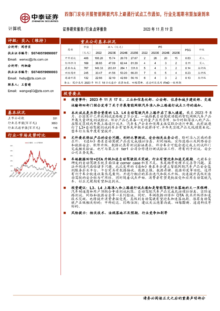 中泰证券:计算机行业点评报告:四部门发布开展智能网联汽车上路通行试点工作通知,行业兑现期有望加速到来.pdf