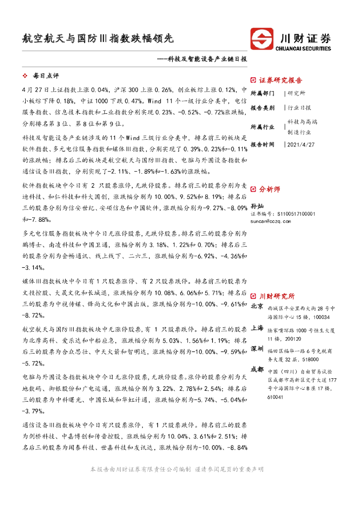 川财证券:科技及智能设备产业链日报:航空航天与国防Ⅲ指数跌幅领先.pdf