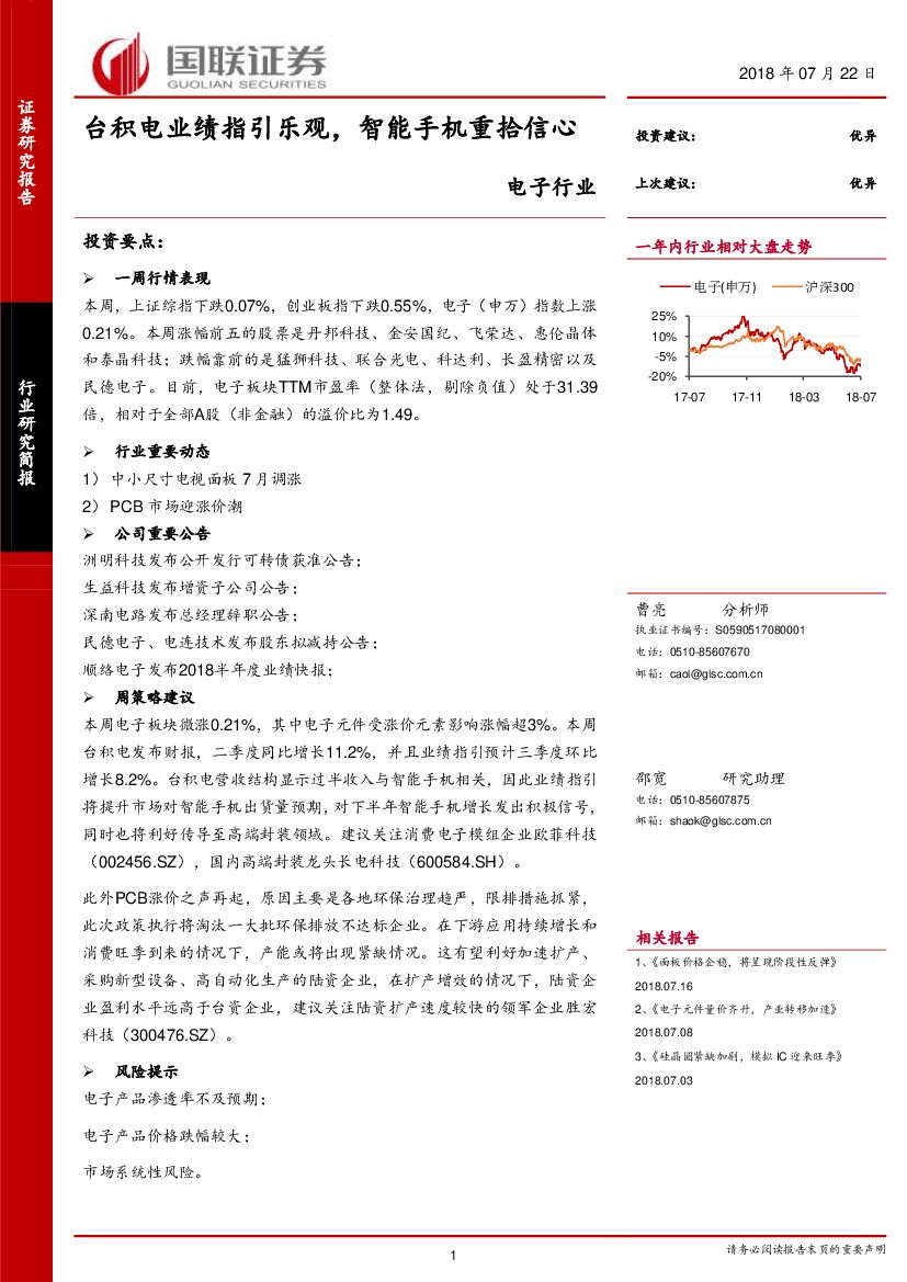 国联证券:电子行业:台积电业绩指引乐观,智能手机重拾信心.pdf