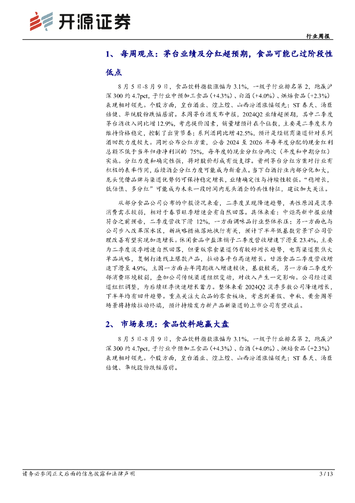 开源证券:食品饮料行业周报:茅台加大分红积极表态,淡季过后关注零食板块.pdf