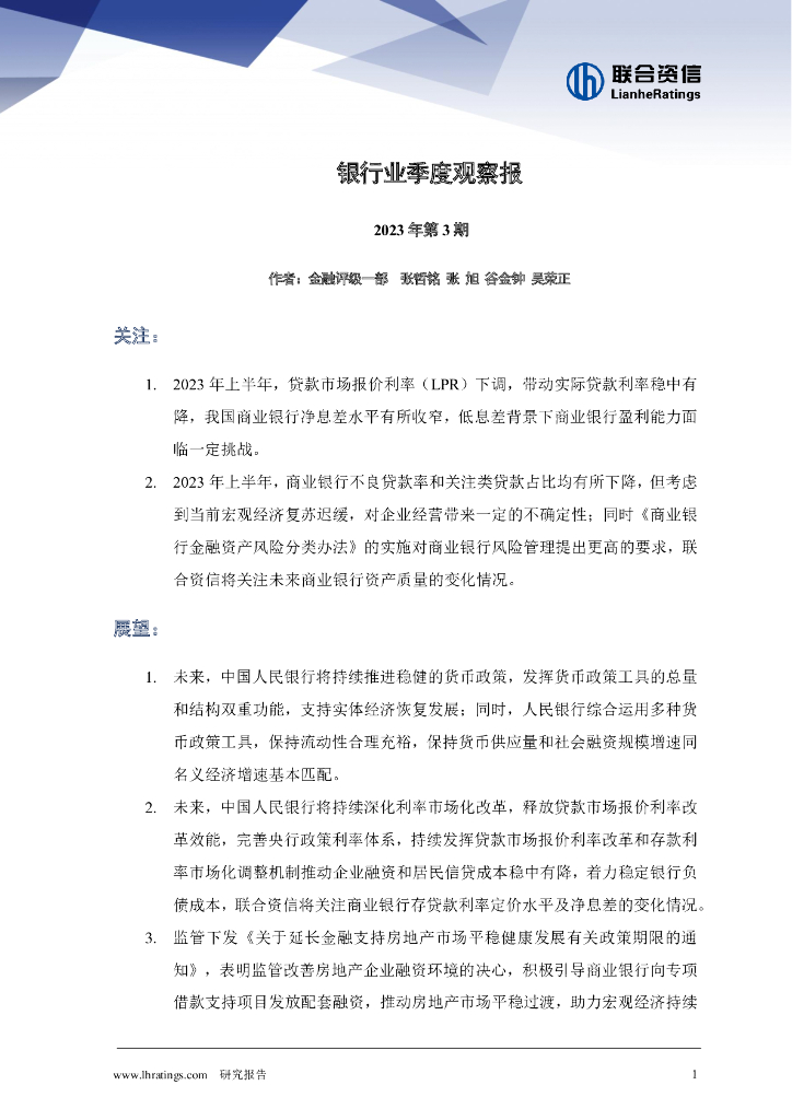 联合资信:银行业季度观察报(2023年第3期).pdf