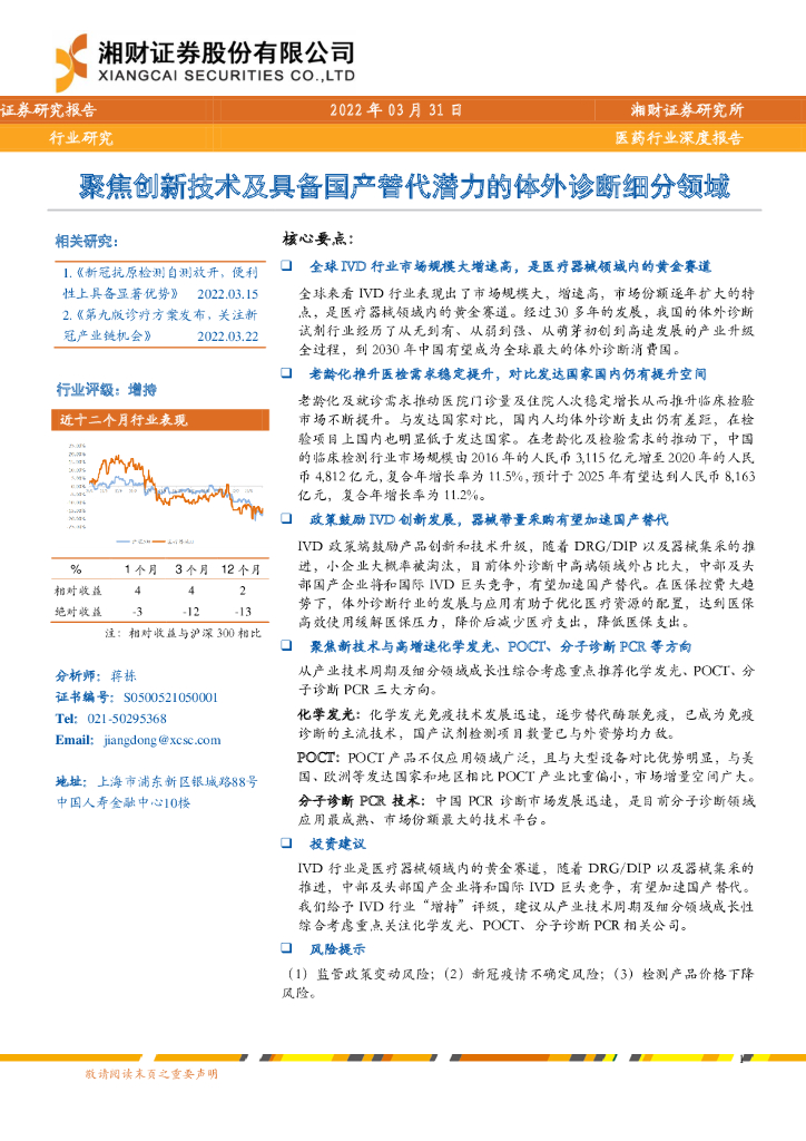 湘财证券:医药行业深度报告:聚焦创新技术及具备国产替代潜力的体外诊断细分领域.pdf