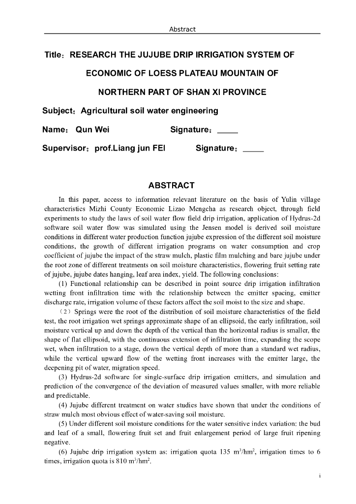 陕北黄土高原山地枣树滴灌经济型灌溉制度研究.doc
