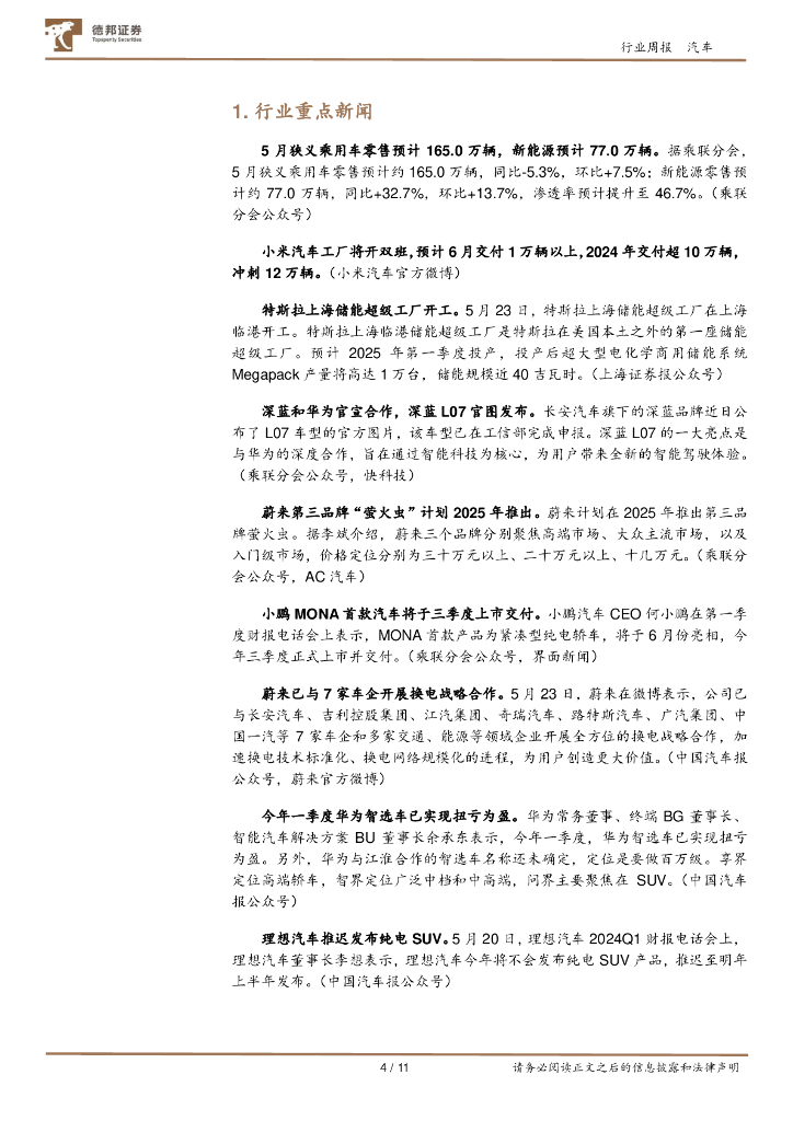 德邦证券:汽车行业周报:5月狭义乘用车零售预计165.0万辆,理想汽车推迟发布纯电SUV.pdf