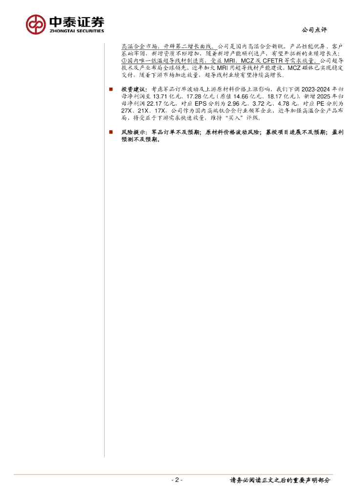 中泰证券:西部超导(688122)-业绩符合预期,看好公司长期发展.pdf
