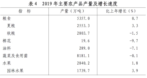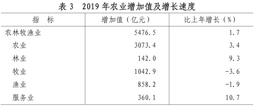 农业生产稳步增长。农林牧渔业增加值5476.5亿元,按可比价格计算,比上年增长1.7%。粮食总产量1071.4亿斤,增加7.5亿斤,连续6年过千亿斤。无公害农产品、绿色食品、有机农产品和农产品地理标志获证产品10110个,增长9.1%。