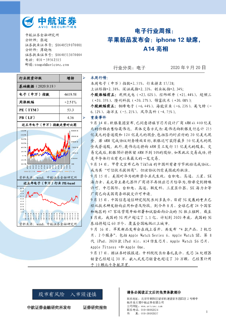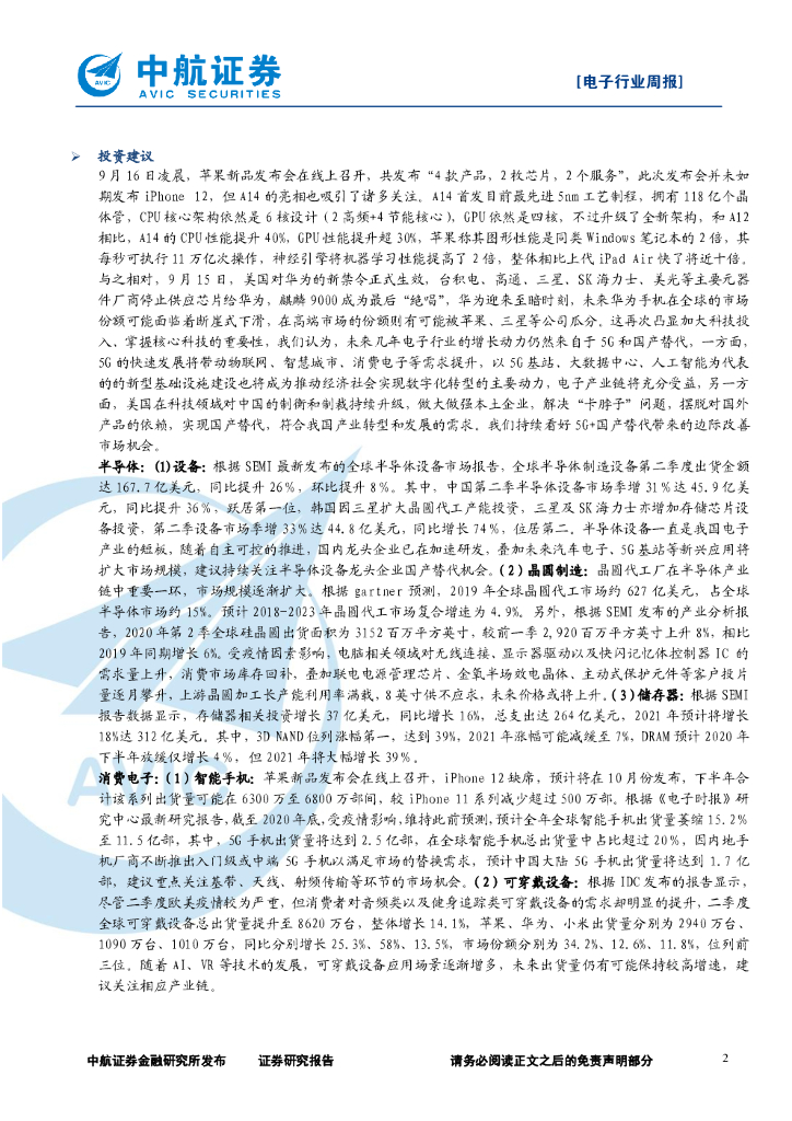 中航证券:电子行业周报:苹果新品发布会:iphone 12缺席,A14亮相.pdf