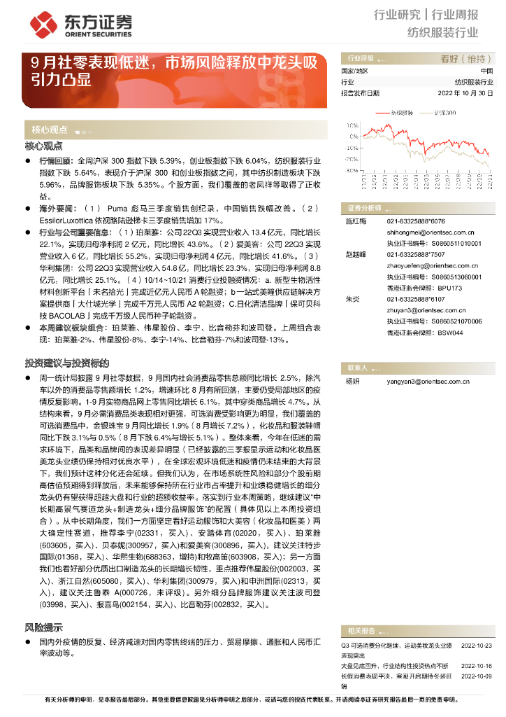 东方证券:纺织服装行业行业周报:9月社零表现低迷,市场风险释放中龙头吸引力凸显.pdf