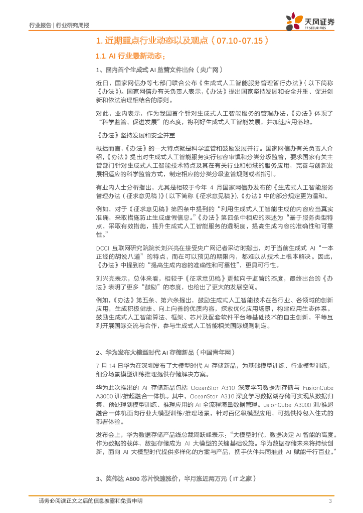 天风证券:通信行业研究周报:国内首个生成式AI监管文件出台;华为发布大模型时代AI存储新品.pdf