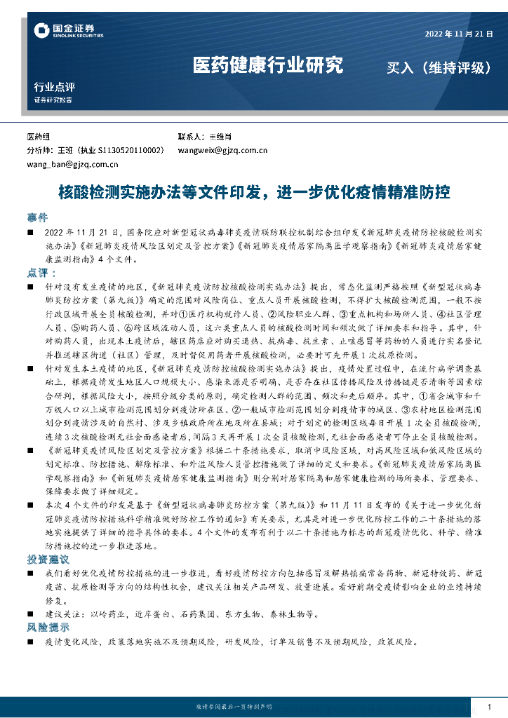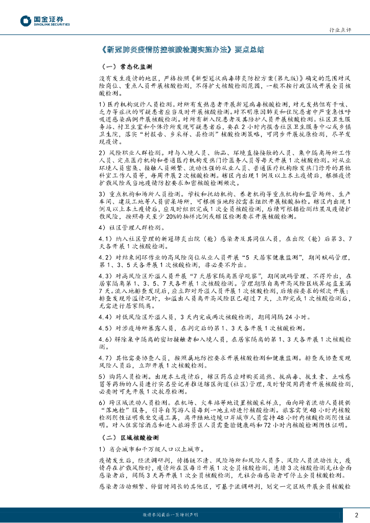 国金证券:医药健康行业研究:核酸检测实施办法等文件印发,进一步优化疫情精准防.pdf