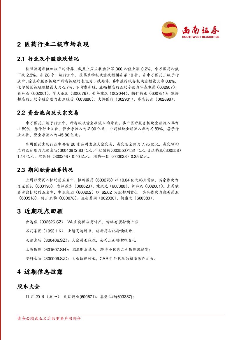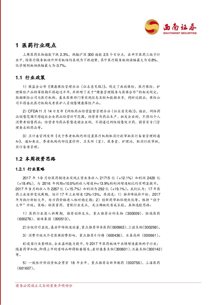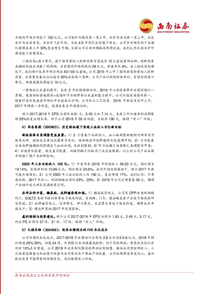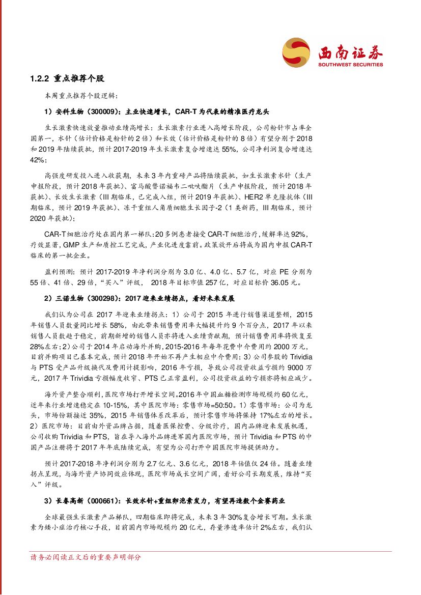 西南证券:医药行业周报:看好高成长龙头,推荐安科生物、三诺生物、华东医药等.pdf