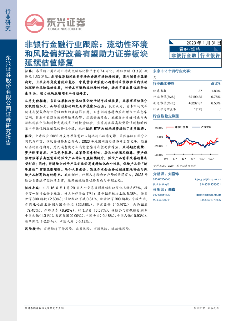 东兴证券:非银行金融行业跟踪:流动性环境和风险偏好改善有望助力证券板块延续估值修复.pdf