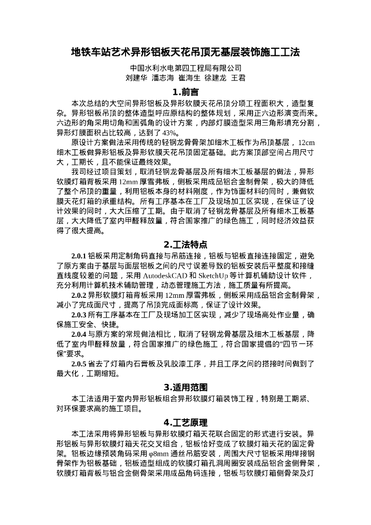 QHGF-2022128 地铁车站艺术异形铝板天花吊顶无基层装饰施工工法.doc