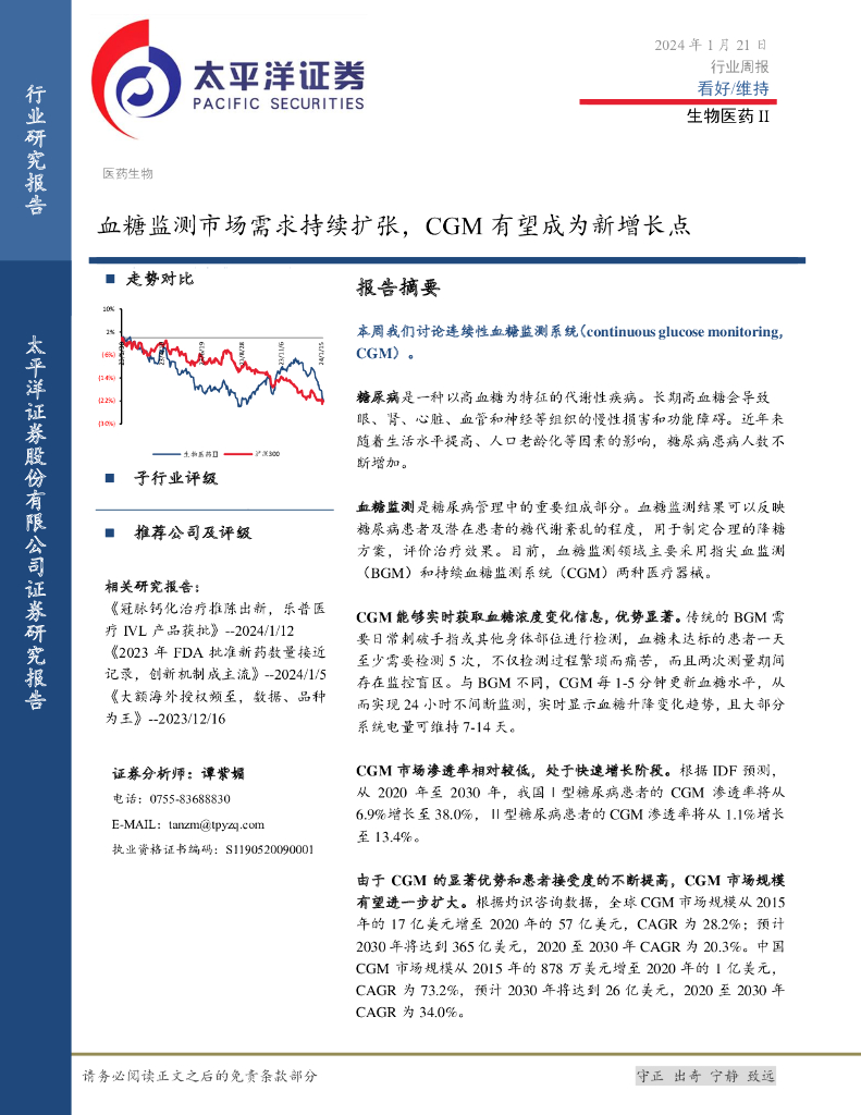 太平洋证券:生物医药II行业周报:血糖监测市场需求持续扩张,CGM有望成为新增长点.pdf
