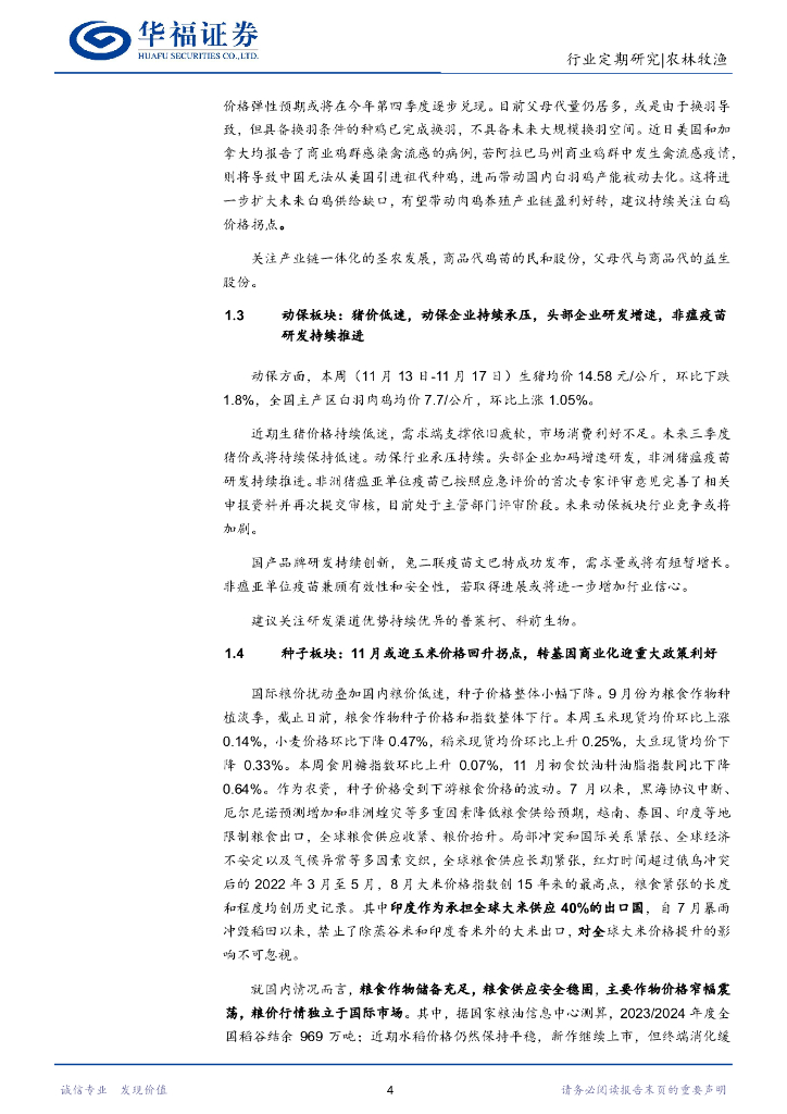 华福证券:农林牧渔行业:生猪需求转暖价格持续下跌,关注板块前瞻性机会.pdf