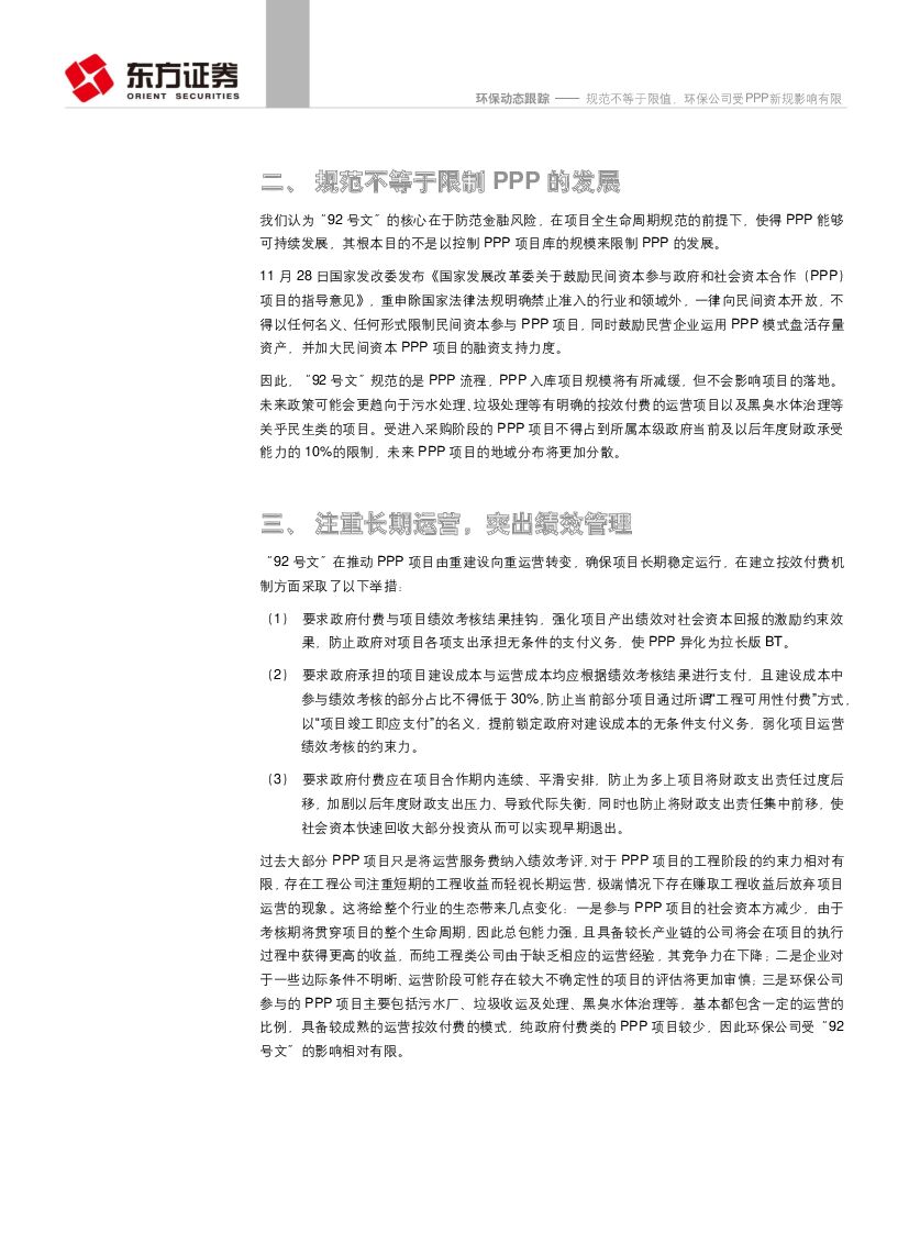 东方证券:环保行业:规范不等于限值,环保公司受PPP新规影响有限.pdf