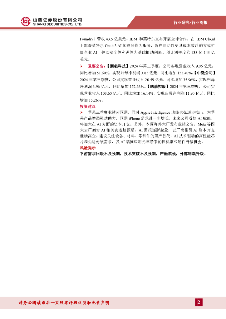 山西证券:电子周跟踪:苹果三季度业绩超预期,海外厂商AI资本开支继续高企.pdf