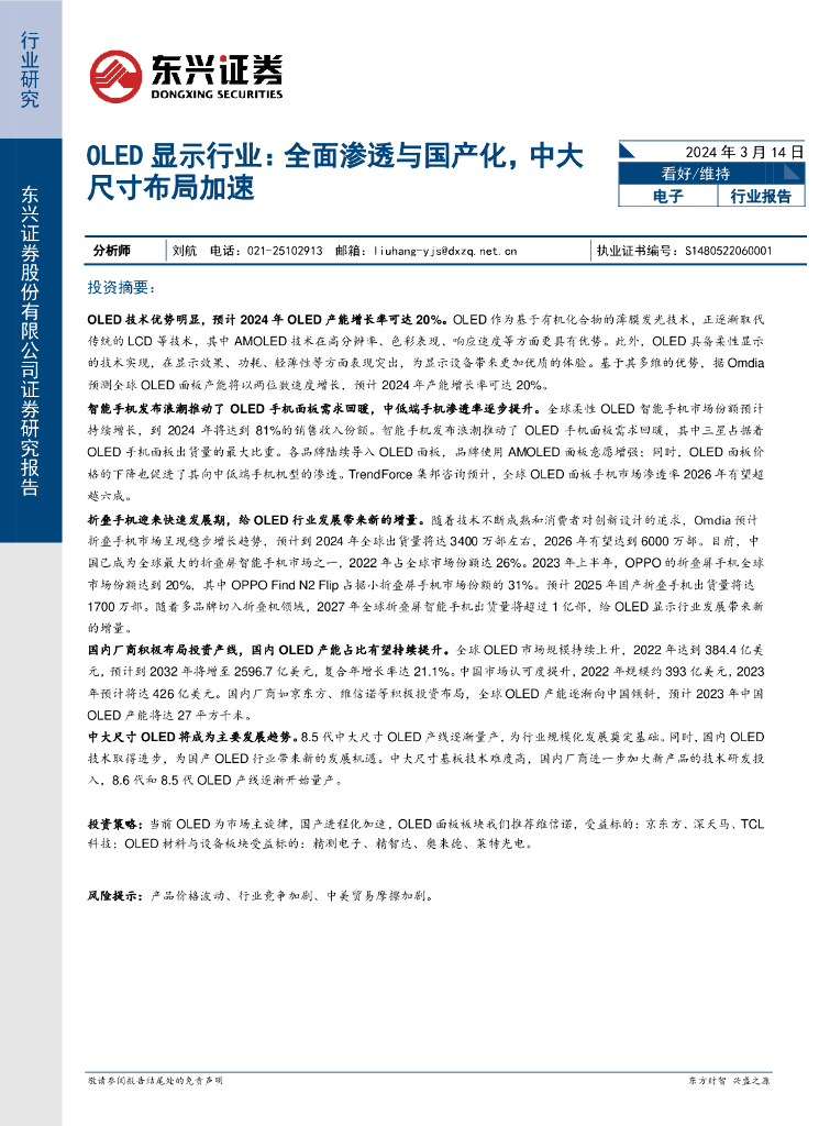 东兴证券:OLED显示行业:全面渗透与国产化,中大尺寸布局加速.pdf