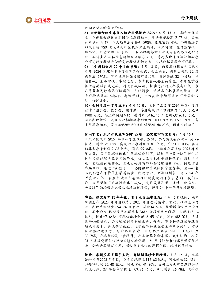 上海证券:食品饮料行业周报:板块结构性增长,金徽燕京等表现优异.pdf