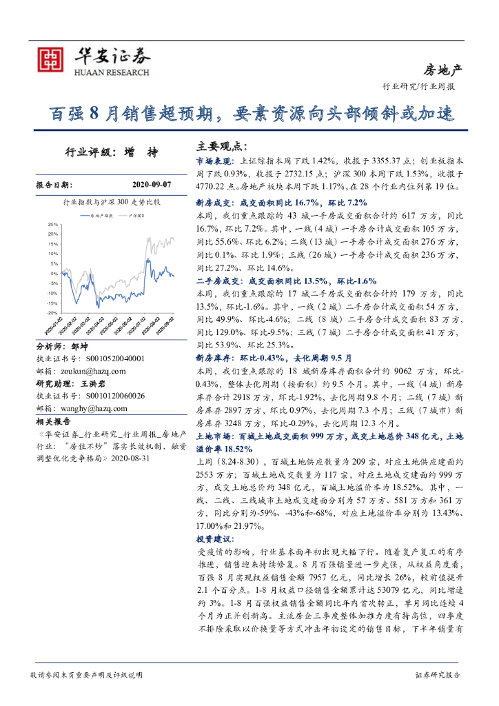 华安证券:房地产行业周报:百强8月销售超预期,要素资源向头部倾斜或加速.pdf