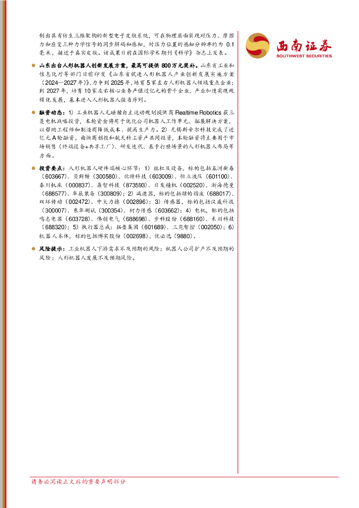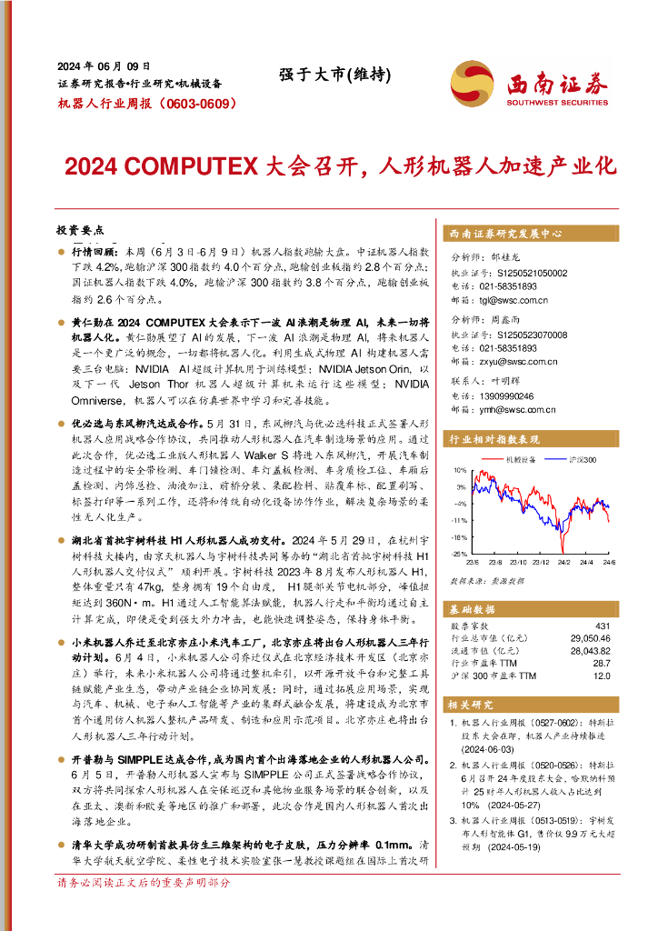 西南证券:机器人行业周报:2024COMPUTEX大会召开,人形机器人加速产业化.pdf