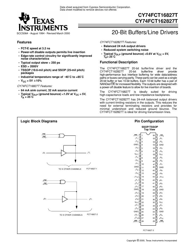 TEXAS INSTRUMENTS CY74FCT16827T CY74FCT162827T 数据手册.pdf