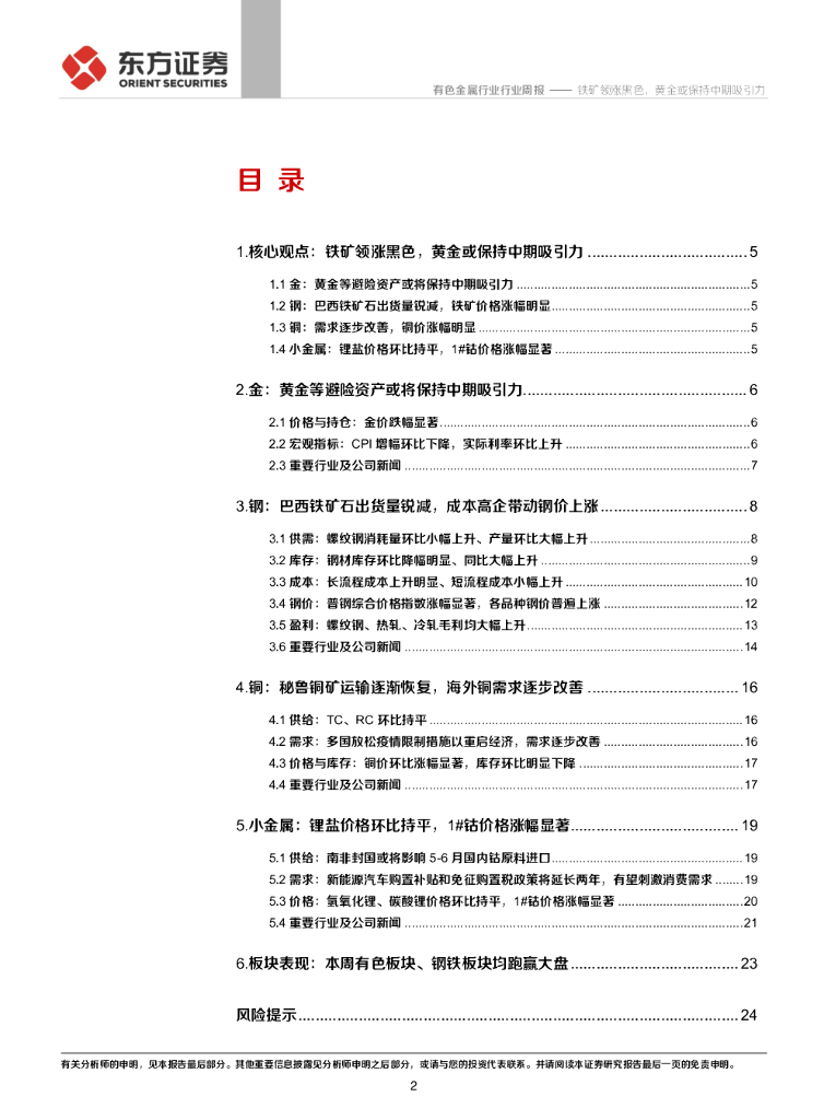 东方证券:有色钢铁行业周策略(2020年第21周):铁矿领涨黑色,黄金或保持中期吸引力.pdf