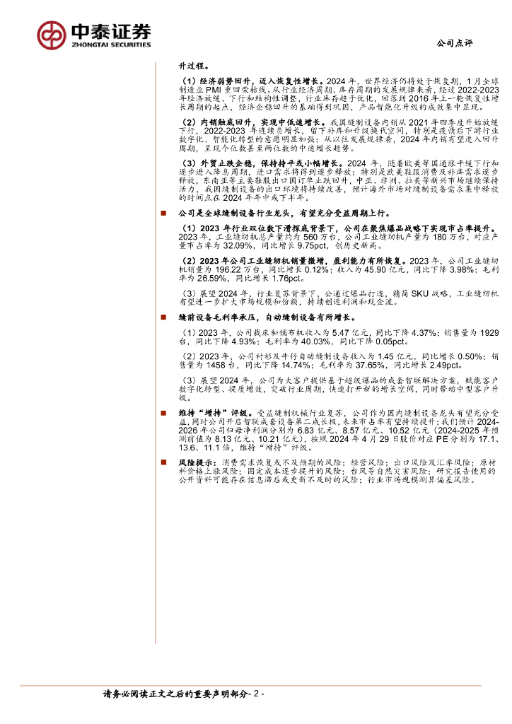 中泰证券:杰克股份(603337)-2024Q1业绩超预期,全球缝制设备龙头有望充分受益周期复苏.pdf