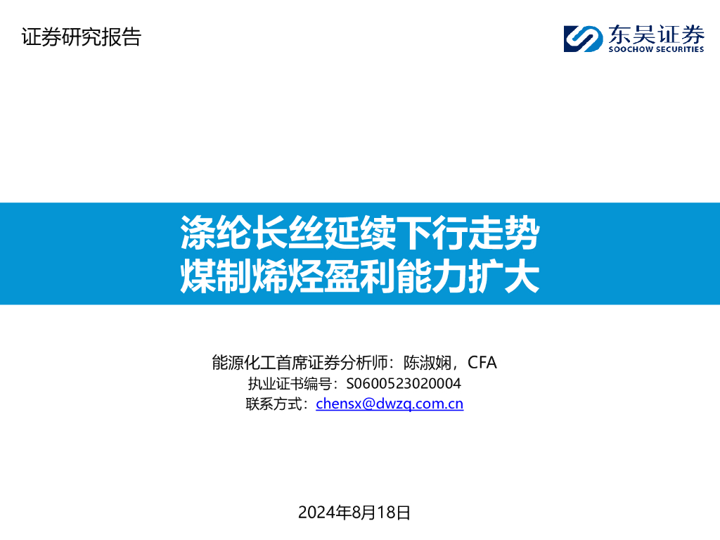 东吴证券:能源化工行业:涤纶长丝延续下行走势,煤制烯烃盈利能力扩大.pdf