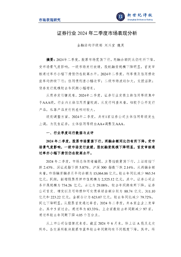 新世纪评级:证券行业2024年二季度市场表现分析报告.pdf