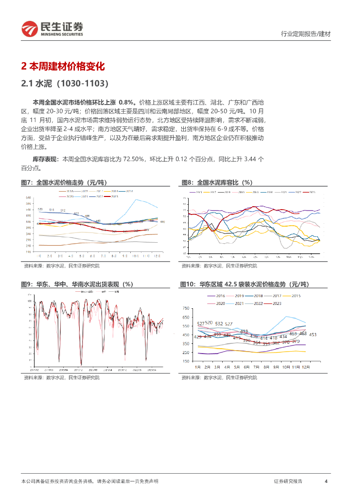 民生证券:建材建筑周观点:关注11-12月年底政策动向,赶工+天气佳水泥旺季特征再现.pdf