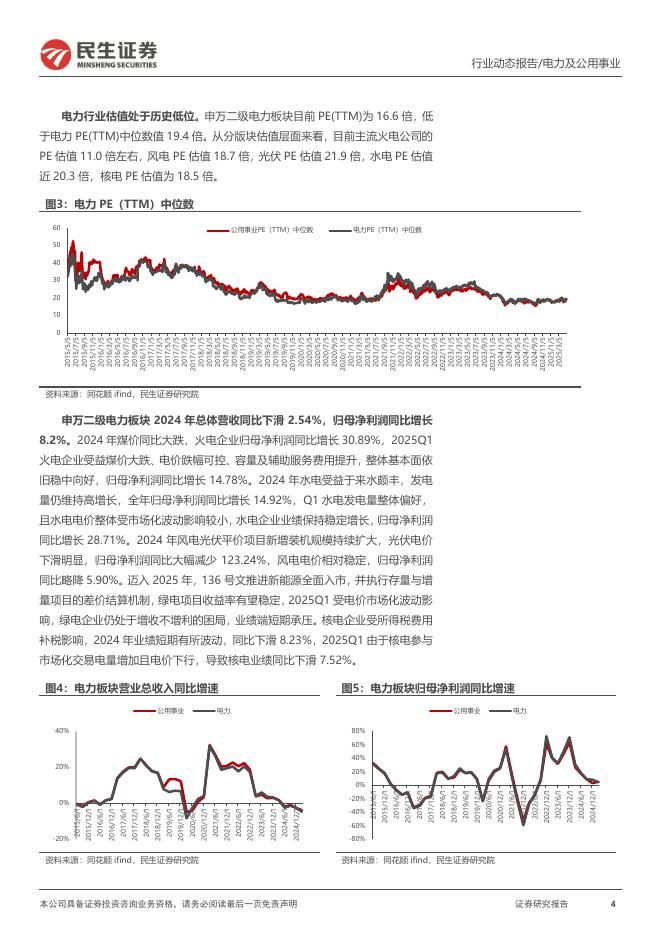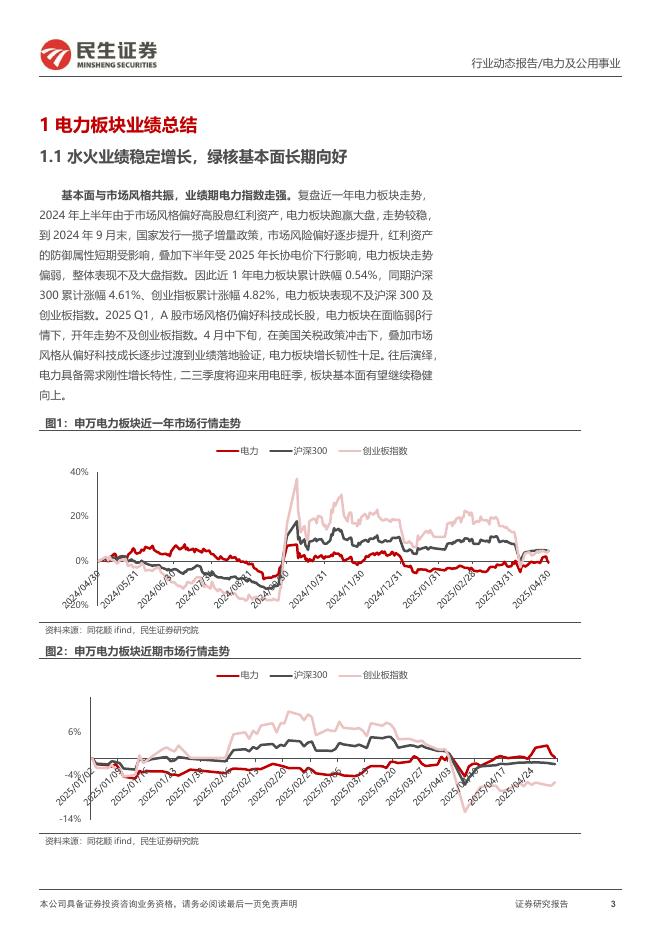 民生证券:电力行业2024年年报及2025年一季报业绩总结:水火业绩向上,绿电增利承压,核电短期波动.pdf