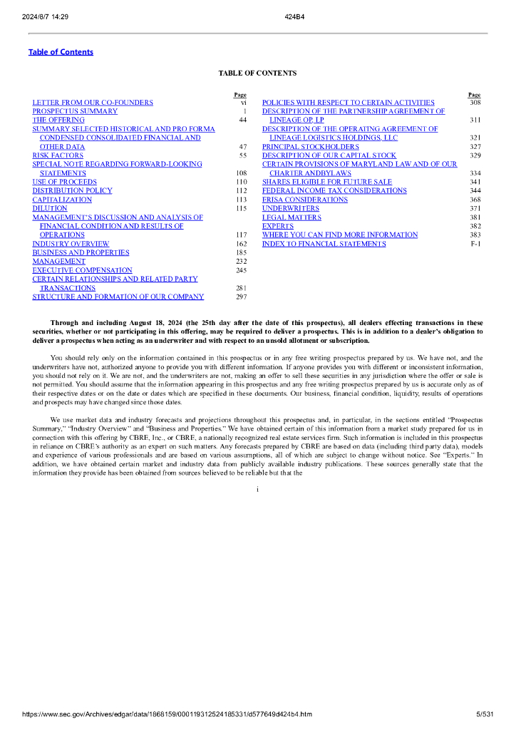 Lineage, Inc美股纳斯达克IPO上市招股说明书.pdf