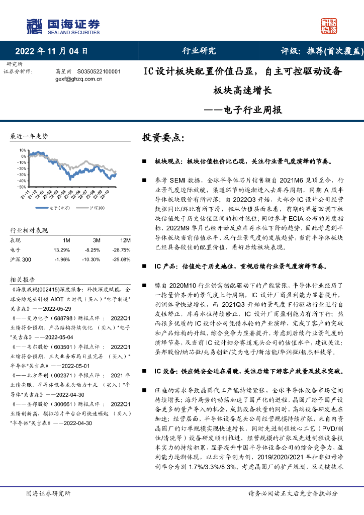 国海证券:电子行业周报:IC设计板块配置价值凸显,自主可控驱动设备板块高速增长.pdf