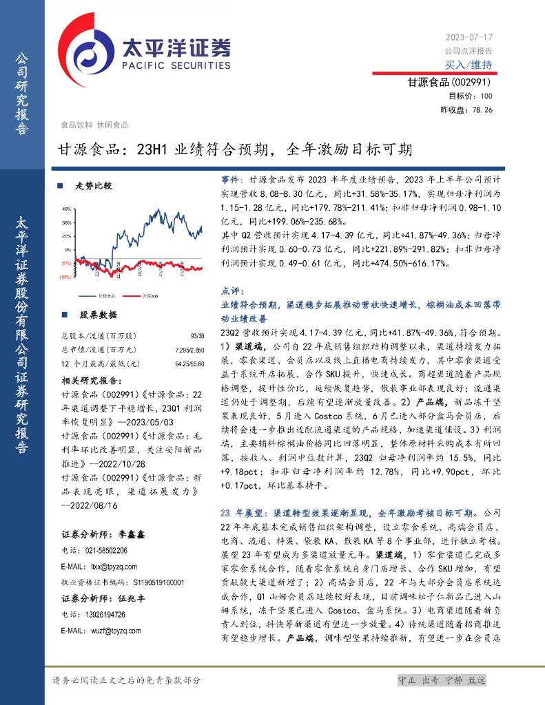 太平洋证券:甘源食品:23H1业绩符合预期,全年激励目标可期.pdf