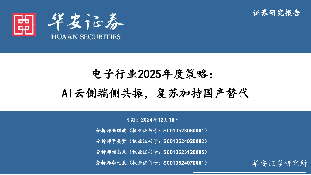 华安证券:电子行业2025年度策略:AI云侧端侧共振,复苏加持国产替代.pdf