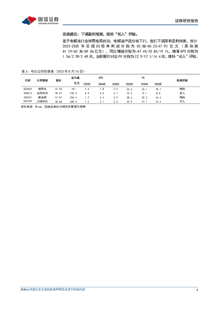 国信证券:天赐材料(002709)-2023年半年报业绩点评:电解液出货量稳步增长,拟发行GDR助力主业拓展.pdf