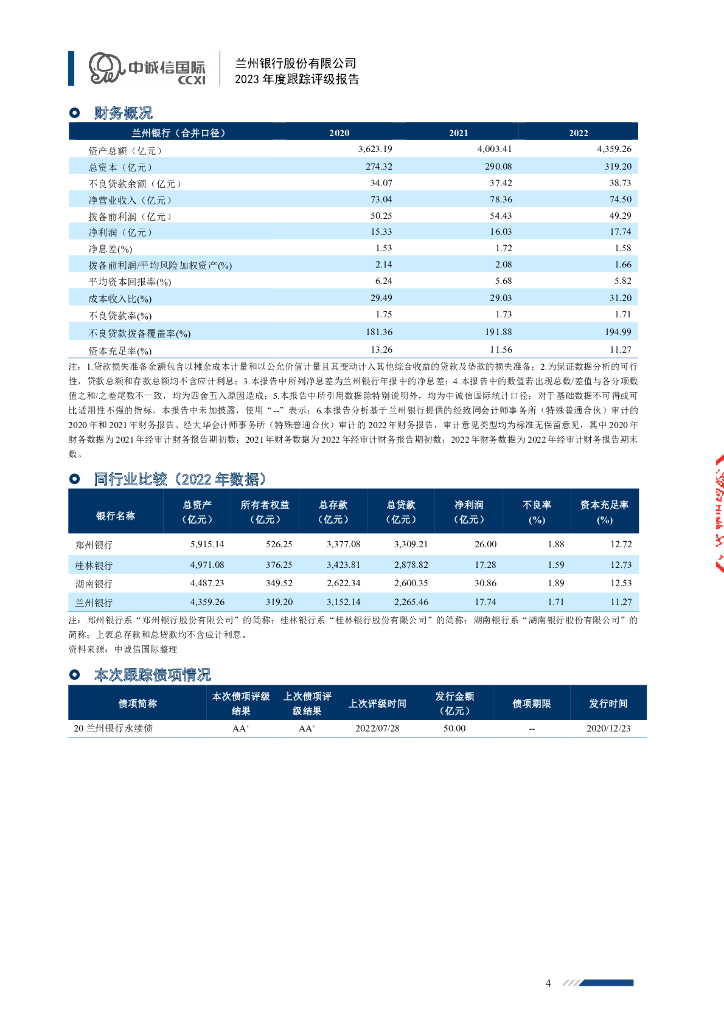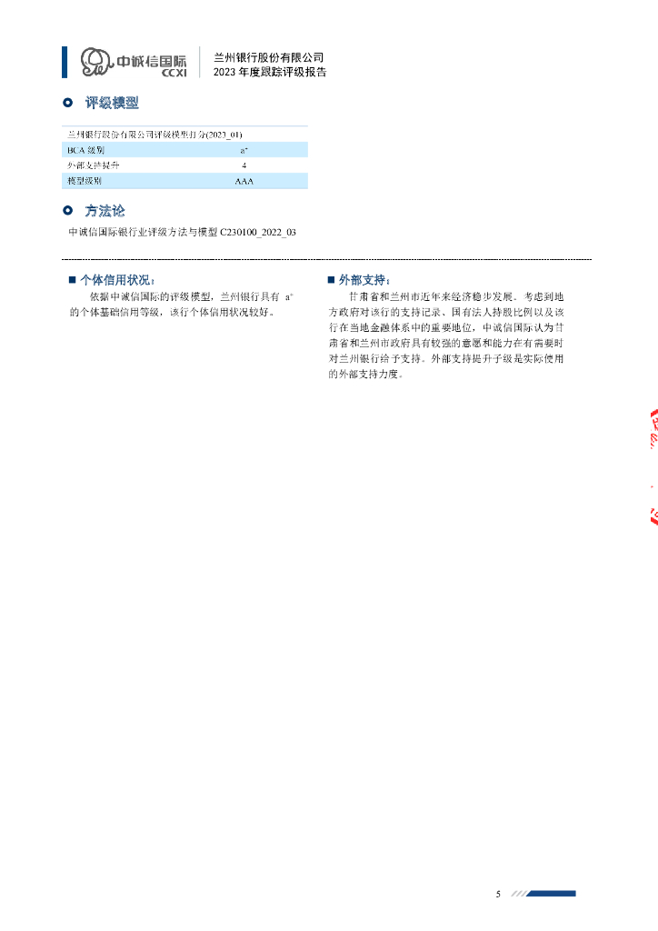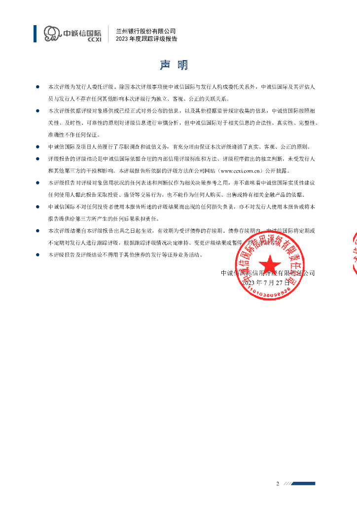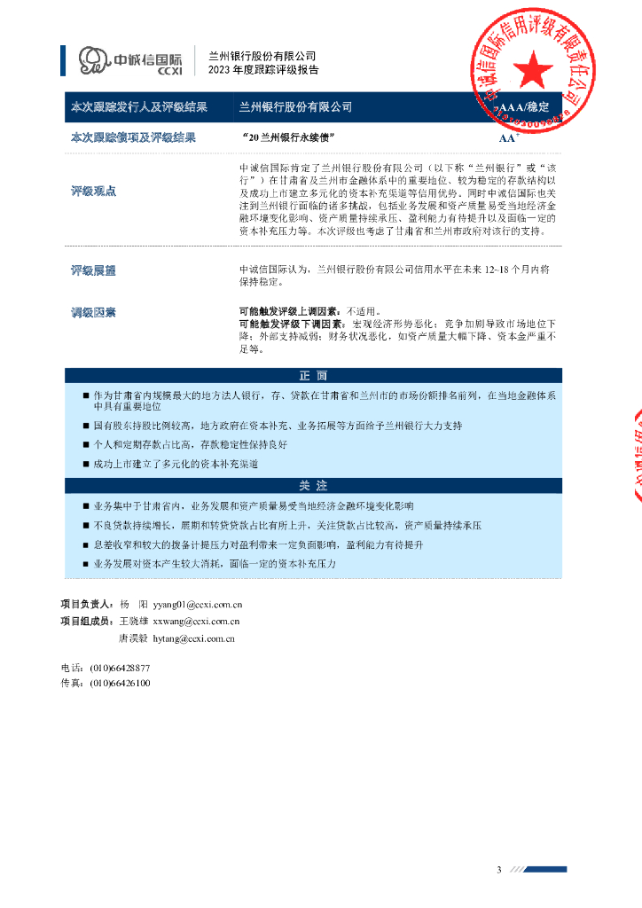 中诚信:兰州银行股份有限公司2023年度跟踪评级报告.pdf